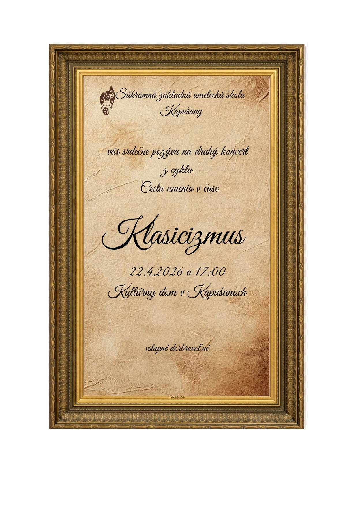 Pozvánka na koncert SZUŠ Kapušany 22. 4. 2026