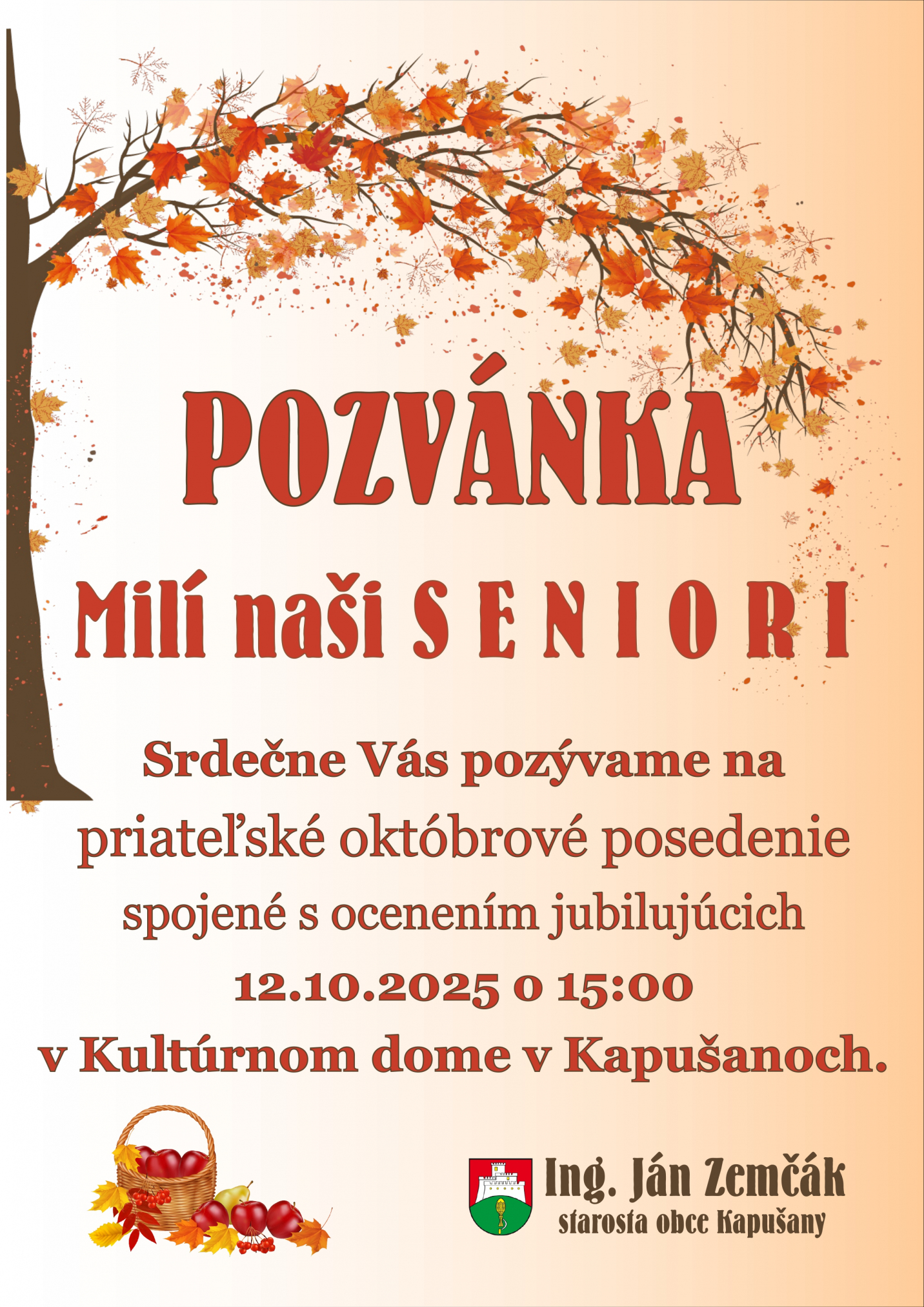 Pozvánka posedenie seniorov 12. 10. 2025