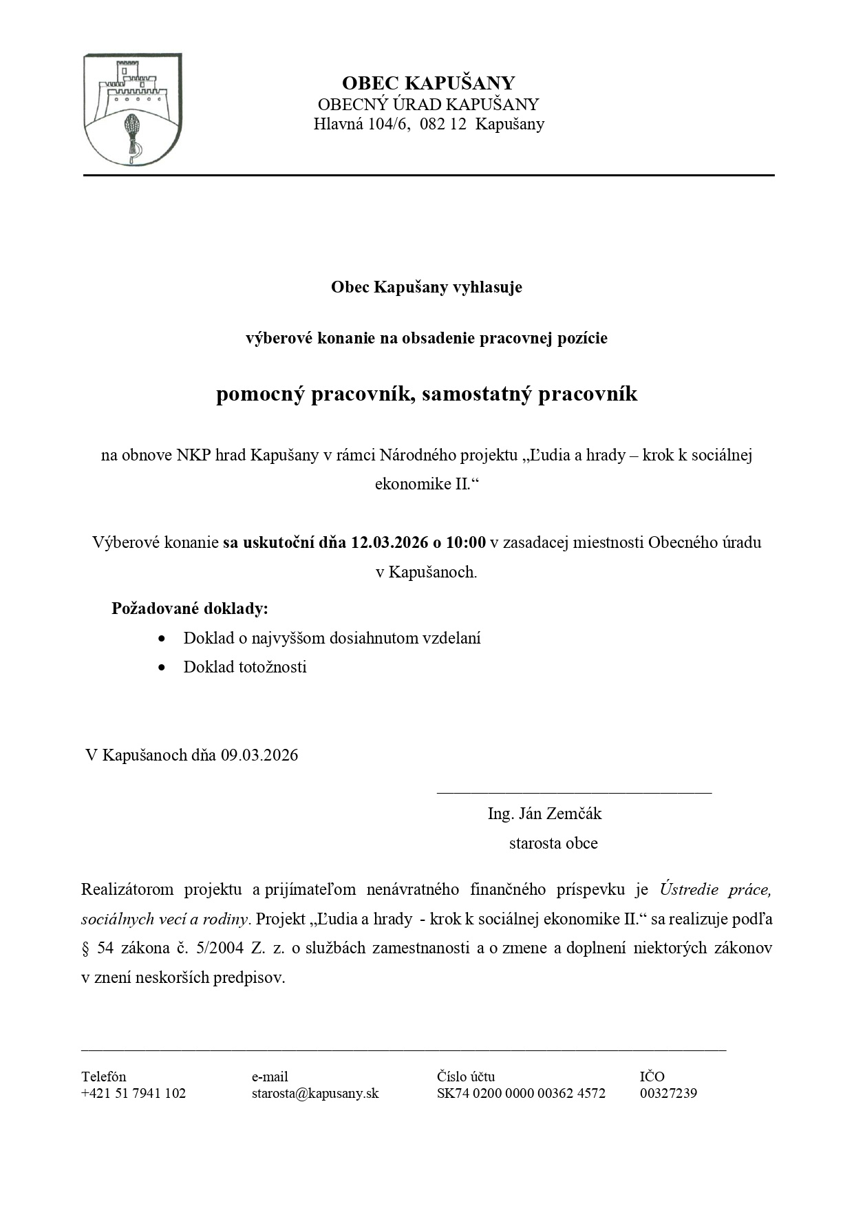 Kultúrno-spoločenské podujatia obce Kapušany 2026