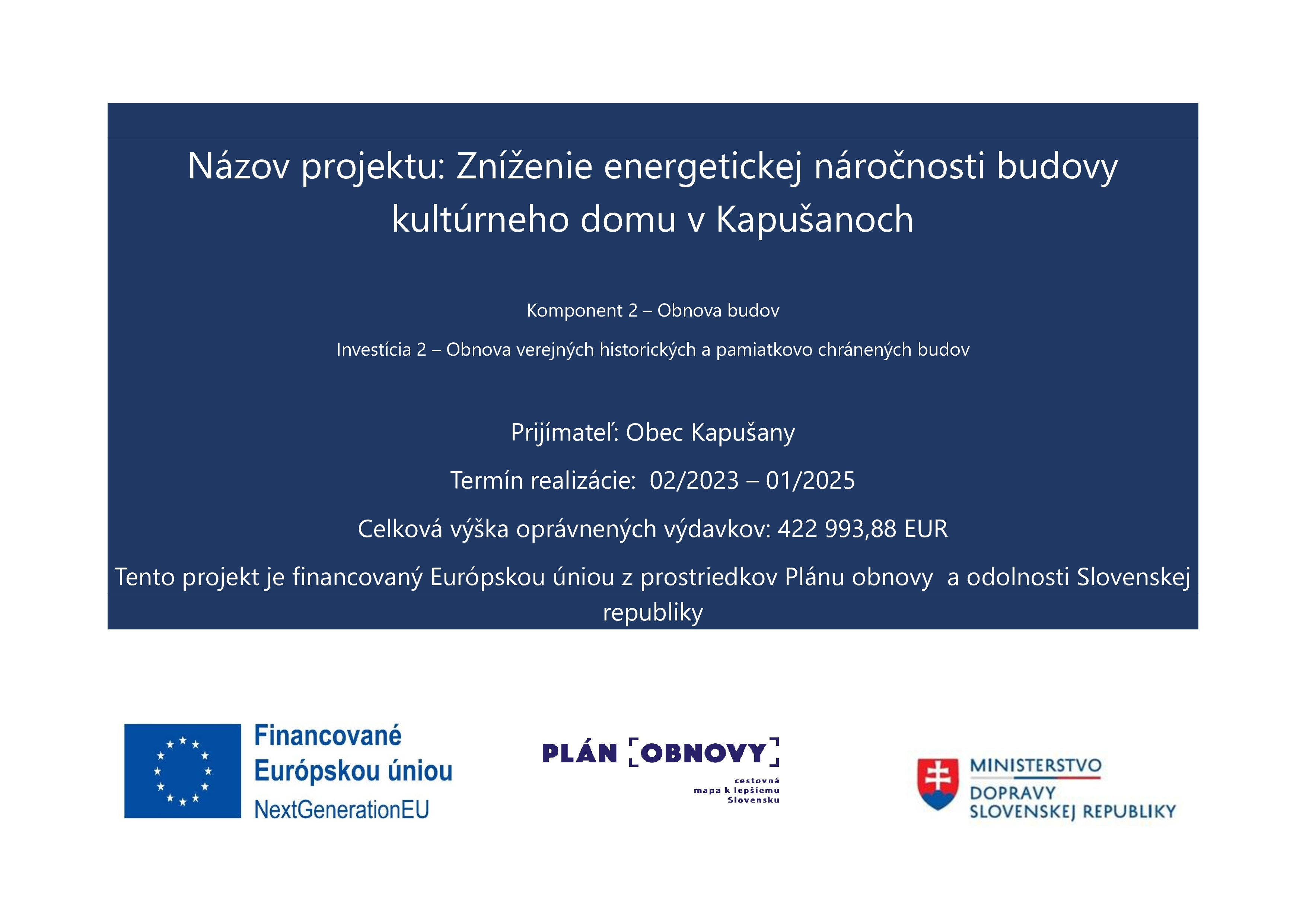 „Zníženie energetickej náročnosti budovy kultúrneho domu v Kapušanoch“